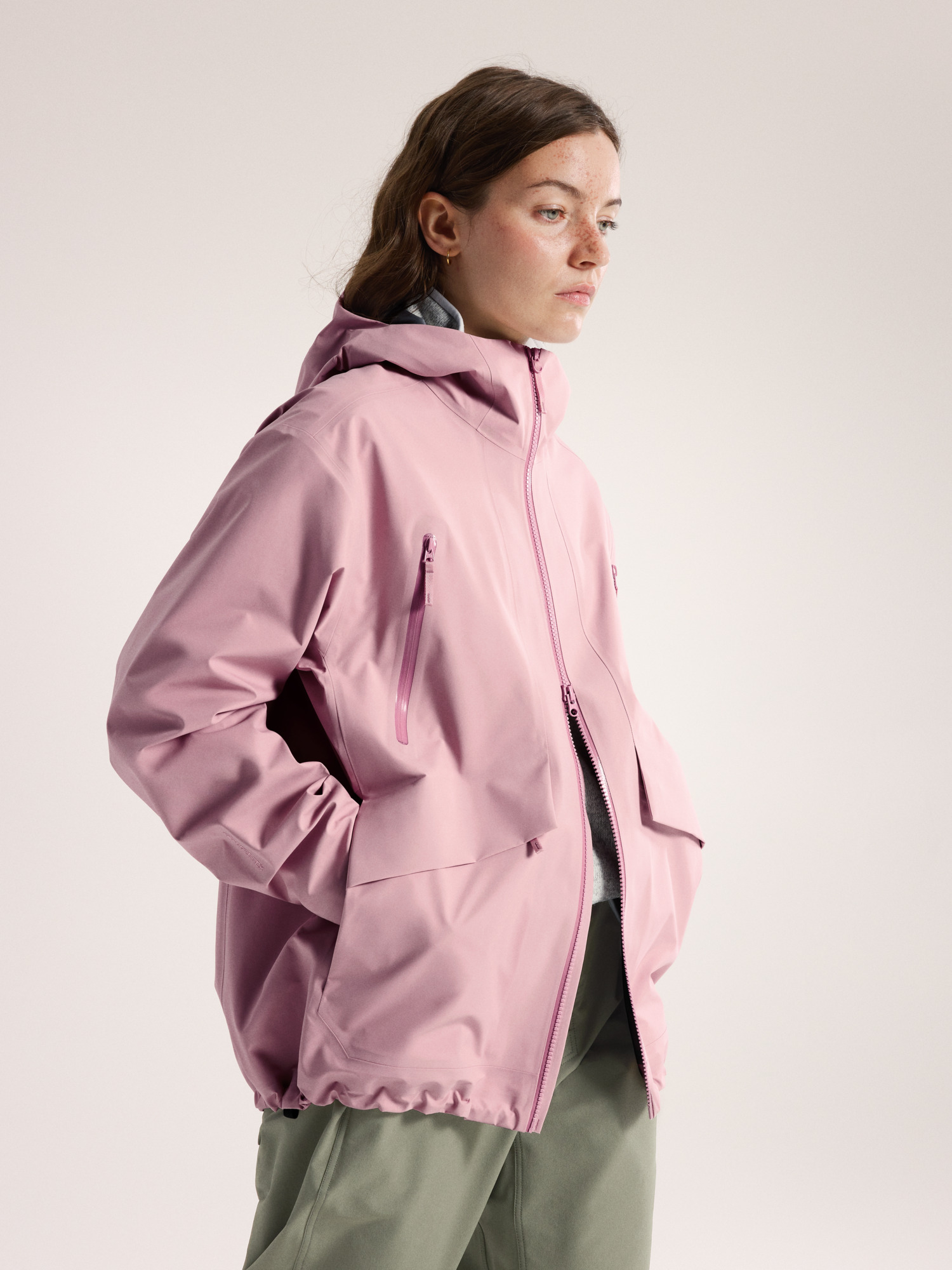 - Body: 80d 3L GORE-TEX ePE with C-KNIT™ backer, plain weave recycled nylon, FC0 DWR - 100% Nylon with ePE and PU Membrane